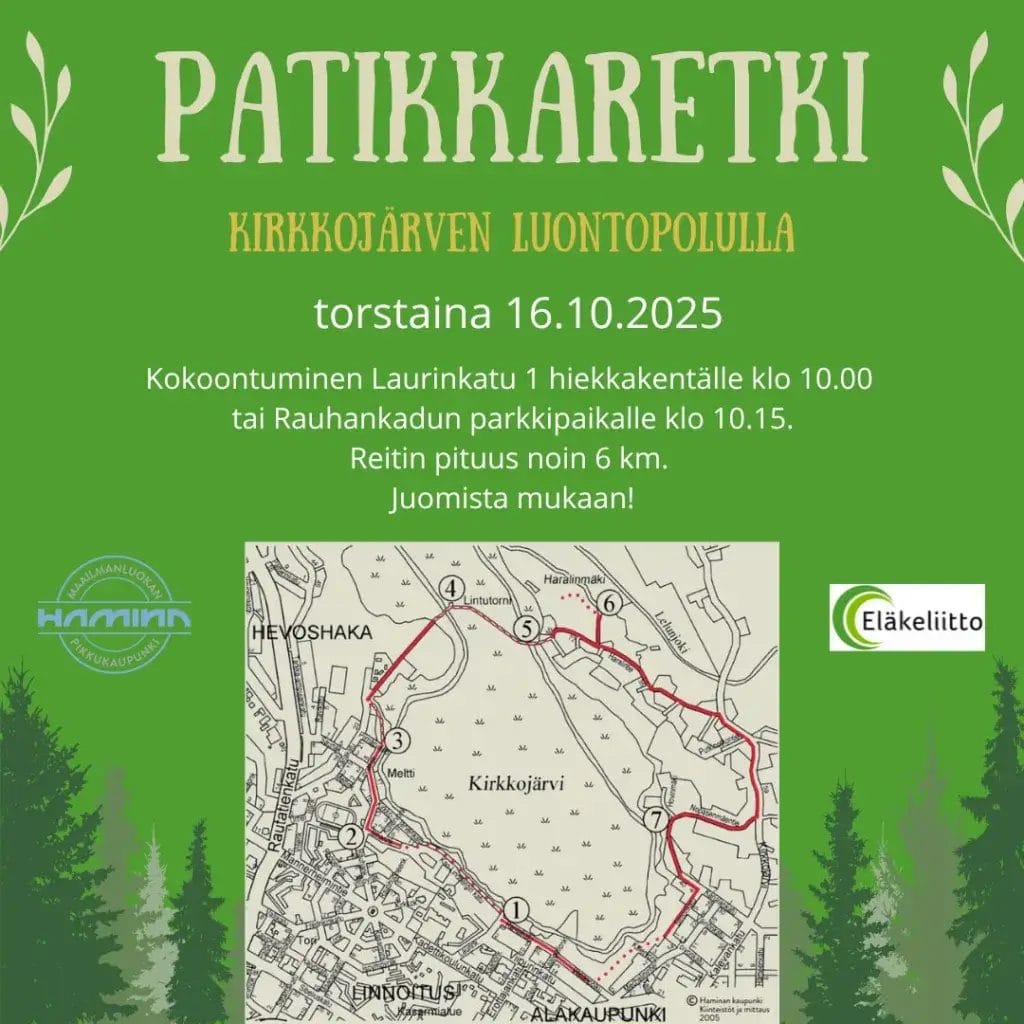 Kirkkojärven luontopolulle patikkaretkelle torstaina 16.10.2025
