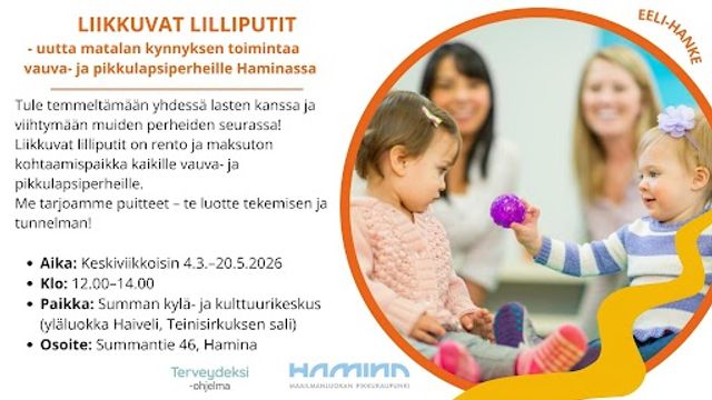 Lähellä.fi -sivustolta löydät yhdistysten ja seurojen yhteystiedot sekä tarjolla olevan toiminnan. Haminassa on paljon erilaista tarjontaa, kaikenikäisille ja kaikenkokoisille.