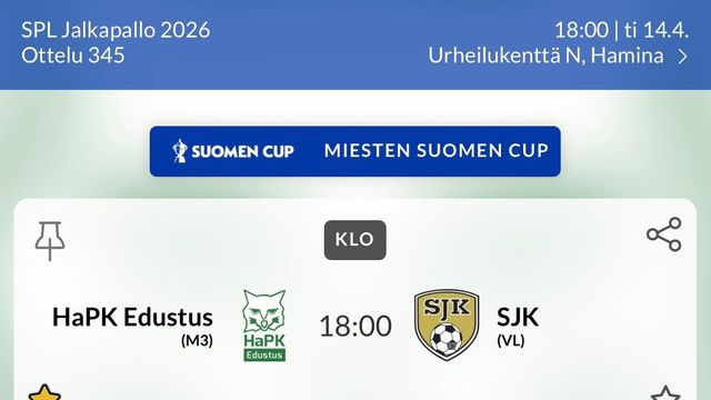 HaPK Edustus – SJK / Suomen Cup