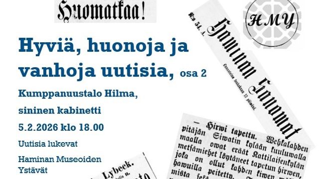 Haminassa on ilmestynyt useita sanomalehtiä jo 1800-luvulta lähtien. Haminan museoiden ystävät ovat poimineen Haminassa ilmestyneistä sanomalehdistä uutisia luettavaksi. Uutisiin on…