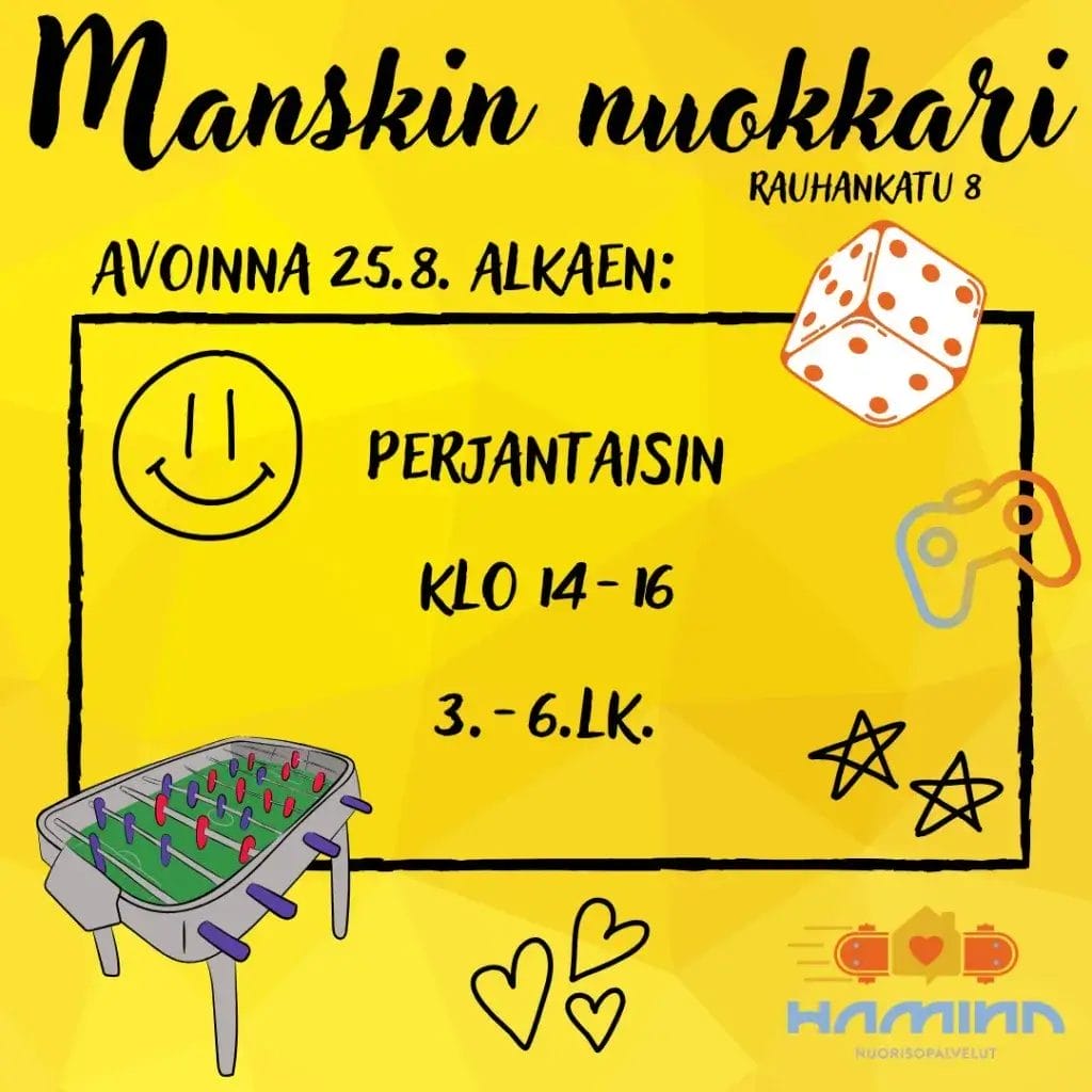 Haminan nuorisopalvelut järjestää nuorisotilatoimintaa nuorille Yhteisötalo Manskilla, Haminan mopo- ja pyörätuvalla sekä Ruissalon nuorisotilalla.