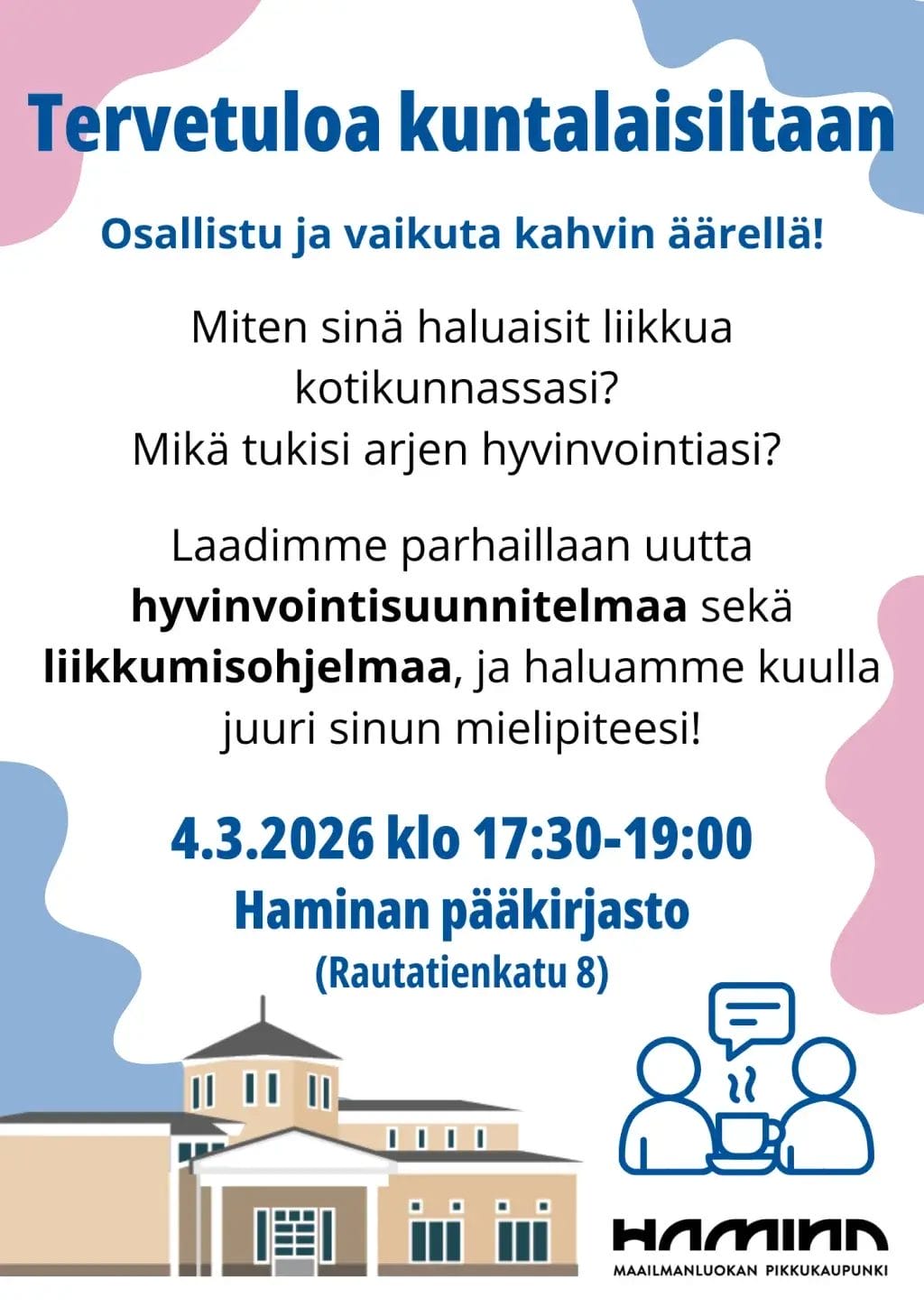 Haminan Pääkirjastolla keskiviikkona 4.3.2026 klo 17.30 – 19