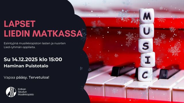 Musiikkiopiston lasten ja nuorten Lied-ryhmän oppilaita esiintyy konsertissa Haminassa. Vapaa pääsy, lämpimästi tervetuloa!