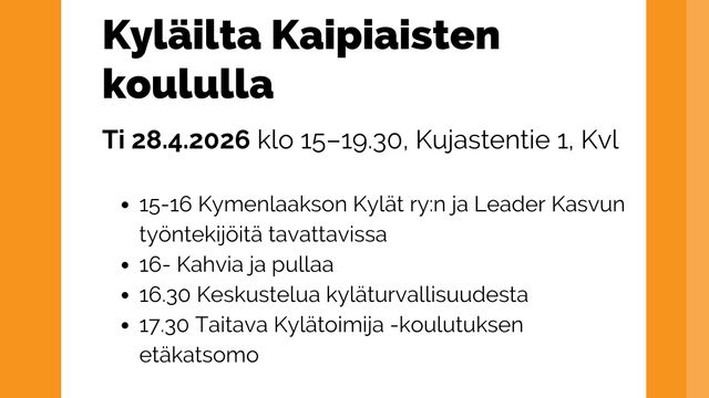 Tapaa muita yrittäjiä ja osallistu ilmaisiin yrittäjille suunnattuihin koulutuksiin! Yrittäjille suunnattuihin tapahtumiin ja koulutuksiin löytyy lisätietoja sivun alalaidasta Kymenlaaksonyt -tapahtumakalenterista sekä Cursorin tapahtumakalenterista.